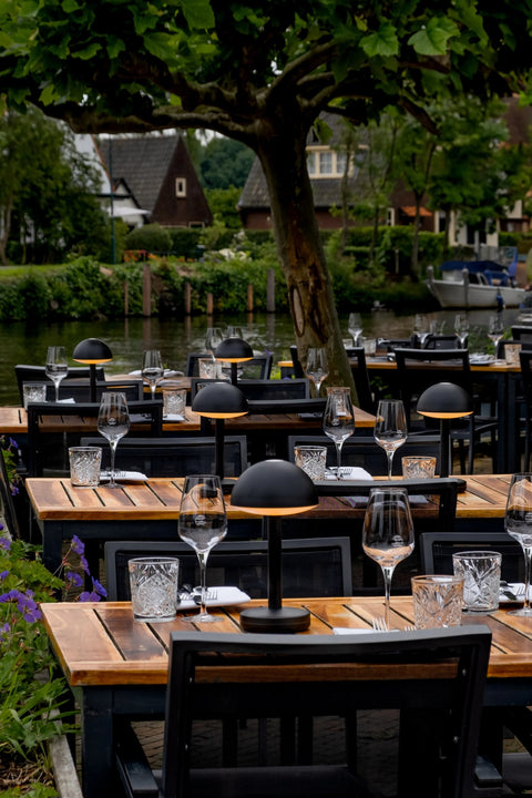 Turn a basic patio into a super cosy outdoor space with Humble terrace lighting, specially designed for hospitality. Cordless, stylish, and ultra-durable. Lights that last. Discover the collection and upgrade your terrace.